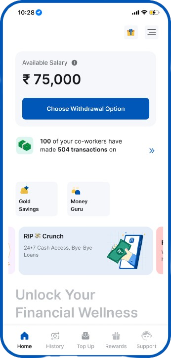 Flexibility to withdraw earned salary in advance for short-term and long-term needs at 0% interest.